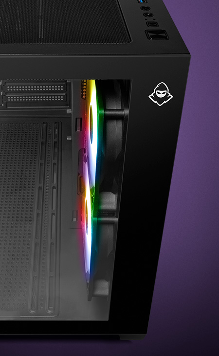 O gabinete é construído com chapas de aço SPCC de 0.5 mm e vidro temperado de 3 mm de espessura, tendo capacidade para até 9 ventoinhas de 120 mm (Duas já inclusas!), além de contar com suporte para water cooler no painel superior e na placa-mãe. O CV450 carrega uma armadura reforçada que te acompanhará nas suas maiores aventuras!