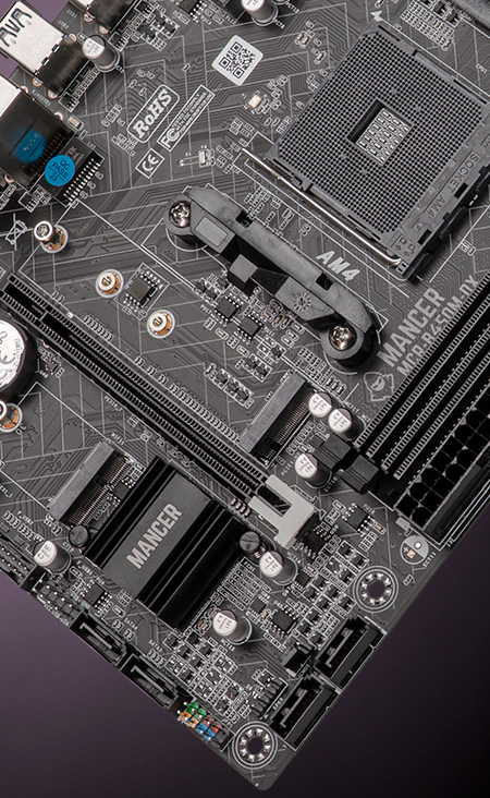 Com arquitetura Micro-ATX, a Mancer B450M-DX é compacta e se adapta facilmente a diversos gabinetes, oferecendo espaço para expansão futura. Com 2 slots M.2, 4 slots SATA e suporte para até 32 GB de memória DDR4, ela oferece a flexibilidade para te acompanhar à medida que seus jogos e exigências evoluem.