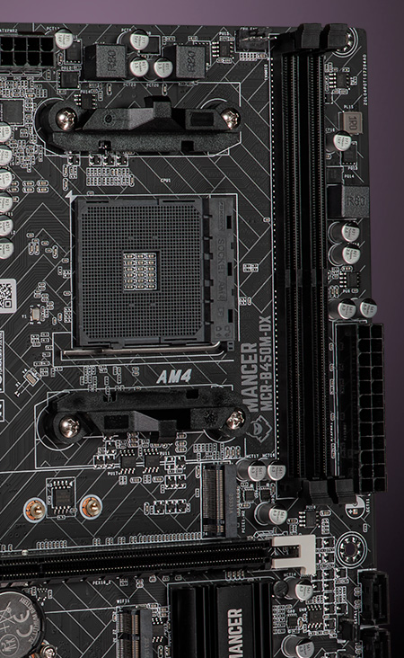 Projetada para desempenho equilibrado, a Mancer B450M-DX é compatível com processadores AMD AM4 e suporta memórias DDR4 até 3200 MHz. Ela oferece estabilidade e fluidez, garantindo uma experiência sem travamentos tanto em tarefas do dia a dia quanto em jogos: seja para um RPG épico ou algo mais casual.